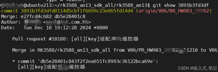git查看文件提交信息 2.使用git show +commitID 显示出了上次提交的commit id、作者信息(邮箱和姓名)、提交日期、commit message、代码diff等。1.使用git show +前面的几个commitID号码,能查询是否有这个commitID号的提交。4.使用git log --grep "占空比" 搜索提交历史关键字。3.使用git log查看提交历史。