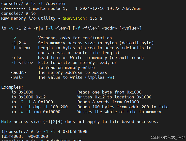 RK3568平台(基础篇)io命令支持 io” 命令通常用于显示 Linux 系统中的 I/O 统计信息。它提供了有关磁盘读写操作的详细信息,包括每个块设备的读写次数、读写扇区数、读写延迟等。io命令可以直接操作某个寄存器,用于查看设置某个GPIO 引脚配置了什么iomux。