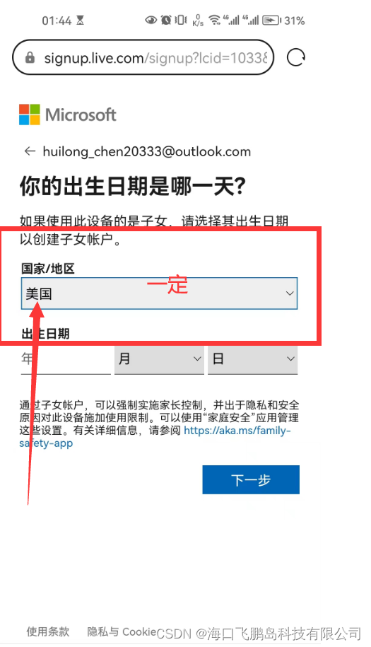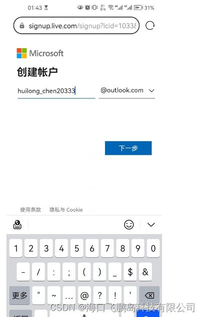 第一步:手机浏览器 创建 微软邮箱
