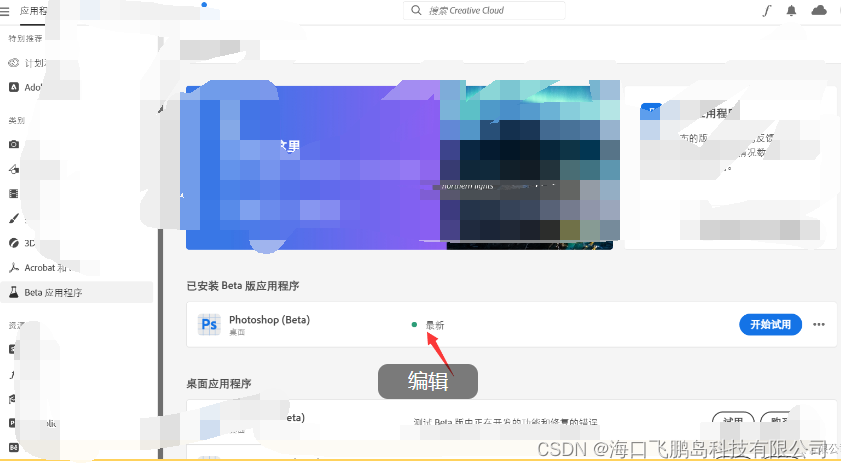 第六步:选择Beta应用,选择 Photoshop (Beta),然后下载安装
