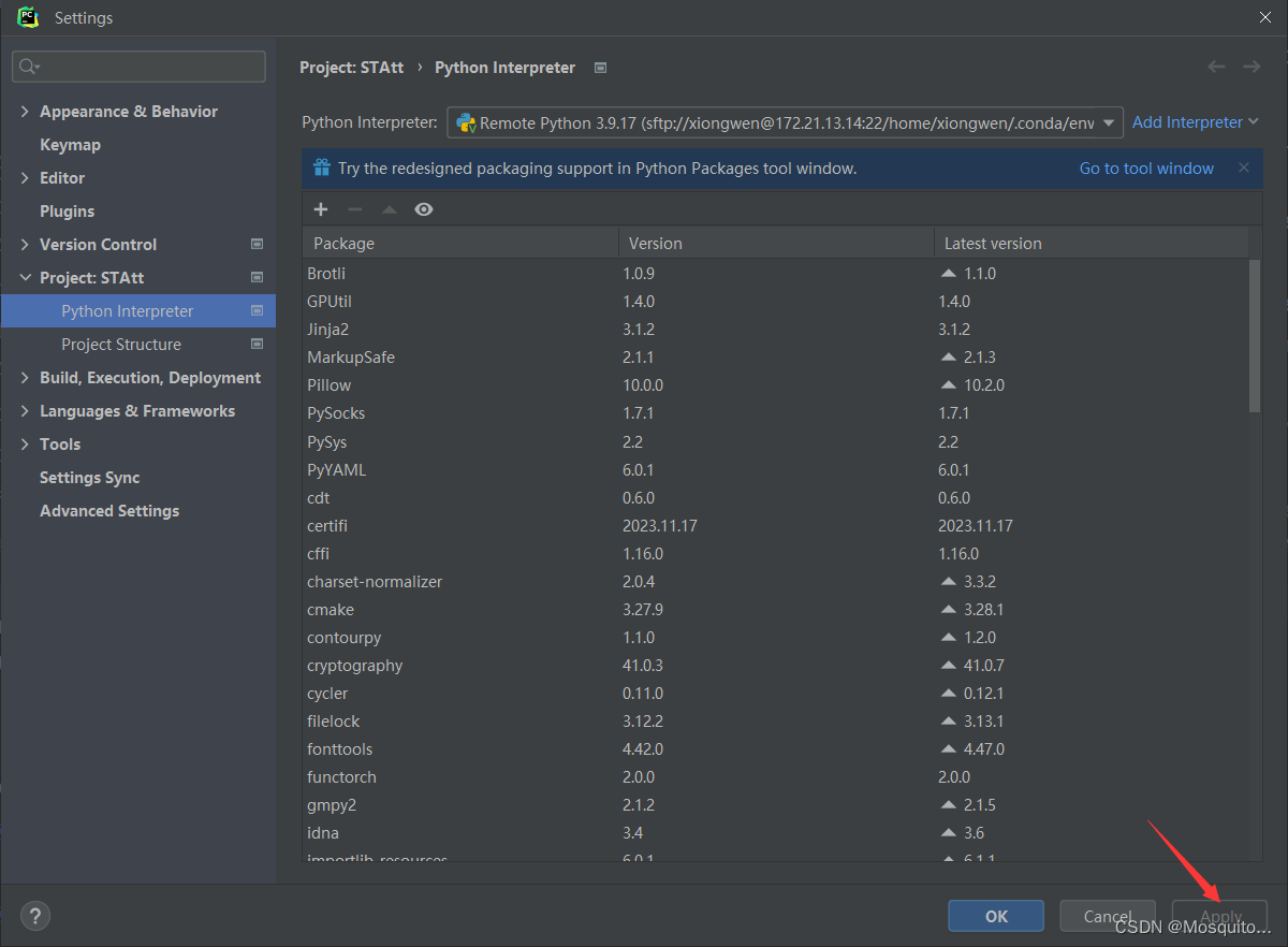 pycharm连接服务器 之前想连接多台服务器的,但是发现解释器只能选择一个,修改了解释器后想修改回原来的服务器的解释器,发现本地修改代码服务器一直没有更新代码,后面发现是修改了解释器需要再点击Apply。
