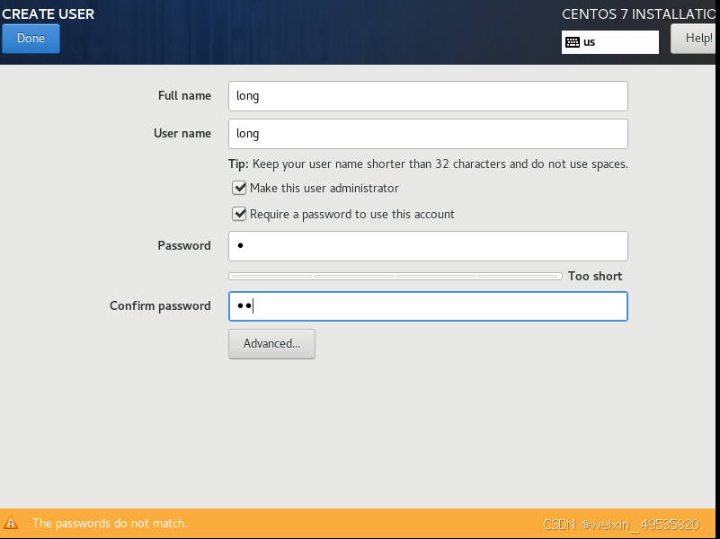 创建用户时选择make给他root权限