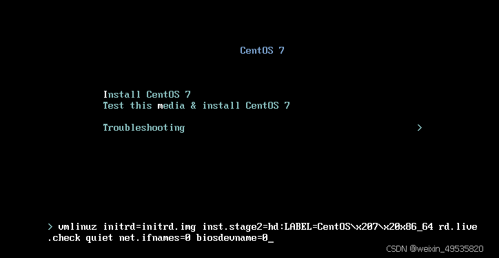 1: 修改内核参数,使网卡名统一 开机按tab进入编辑内核,按一个空格加入net.ifnames=0 biosdevname=0