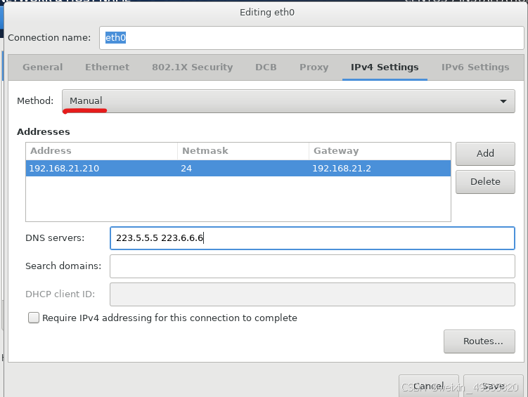选择Manual为手动配置ip