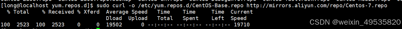 sudo curl -o /etc/yum.repos.d/CentOS-Base.repo http://mirrors.aliyun.com/repo/Centos-7.repo