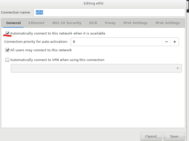 配置网卡时选中该选项为开机自动启动网卡