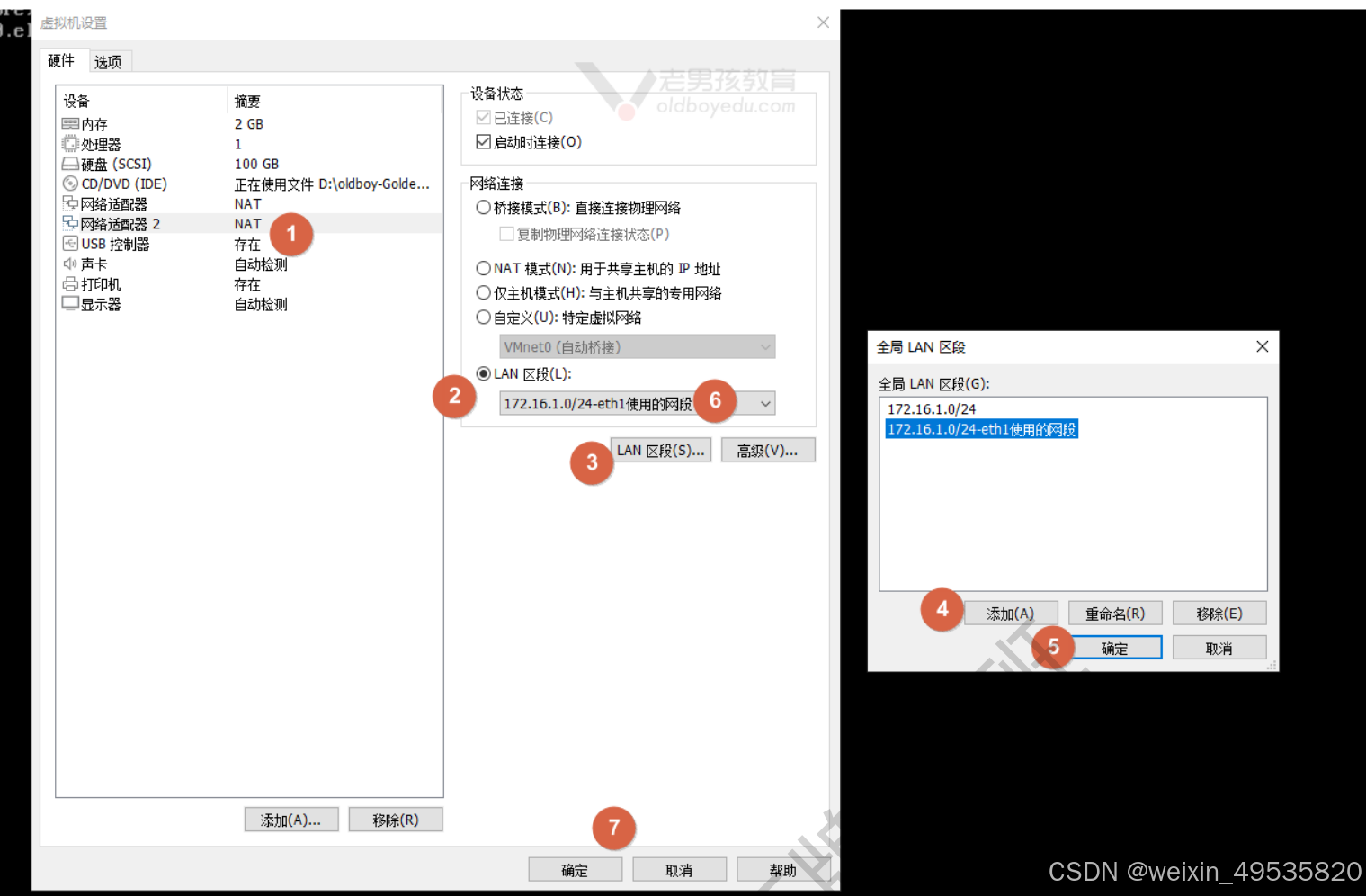 添加网卡,选择LAN区段,添加LAN区段时,可以随意设置,这只是像名字一样