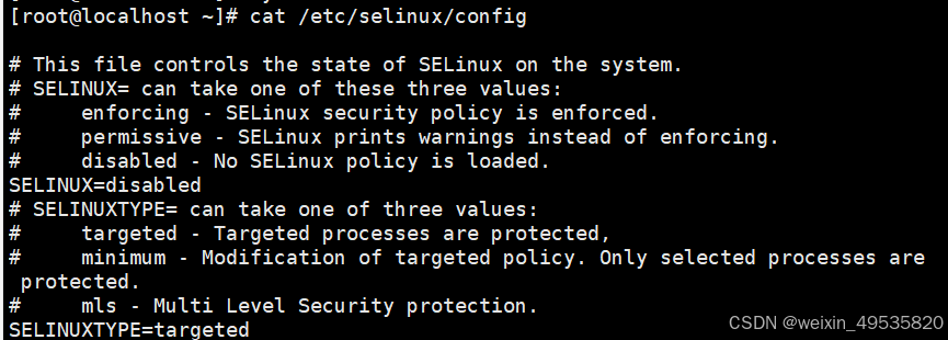 将SELINUX=enforcing提换为SELINUX=disabled则关闭