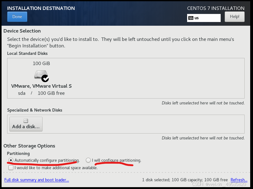上面两个选项分别为自动与手动配置磁盘