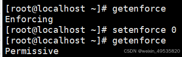 getenforce #结果只要不是enforcing就表示关闭了.