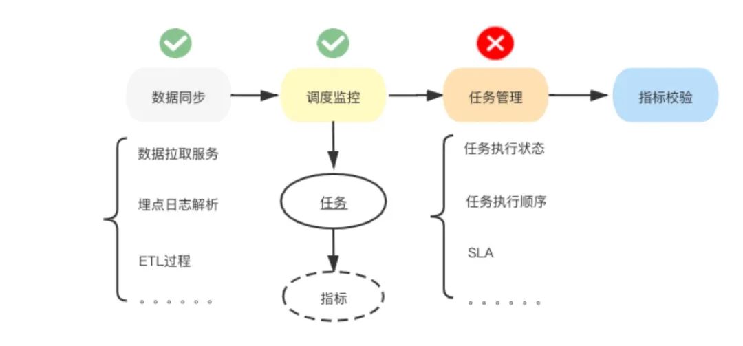 对于数据人尤其是数据产品和分析师,最难排查(头疼)的问题就是指标为什么升/降/没数,一旦业务方提出这种问题就意味着有大半天的时间要花在确认指标口径+计算逻辑+埋点采集上,而且要同时跟业务方、分析师、数据产品、数仓甚至是负责埋点的开发沟通,所以对于业务达到一定复杂度和指标达到一定量级的情况下,采用人肉运维的方式显然是事倍功半的,搭建一套指标监控体系来保证产出数据的时效性和数据质量才是正解。