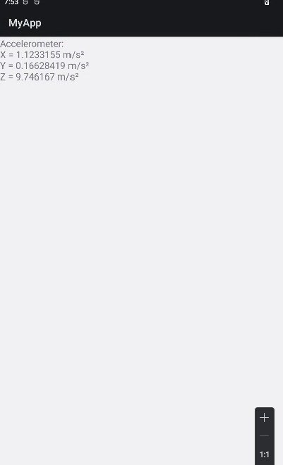 textView.setText("Accelerometer:\nX = " + x + " m/s²\nY = " + y + " m/s²\nZ = " + z + " m/s²");