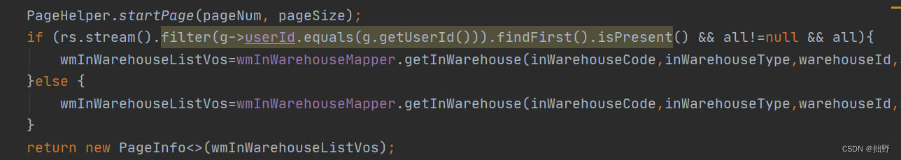 那不对啊,他分页的方法后第一个查询语句是查询用户的啊。按原本那样写,肯定是分页的查询用户的结果啊。点进去一看才发现,这个查询用户的方法是通过feign接口调用的。