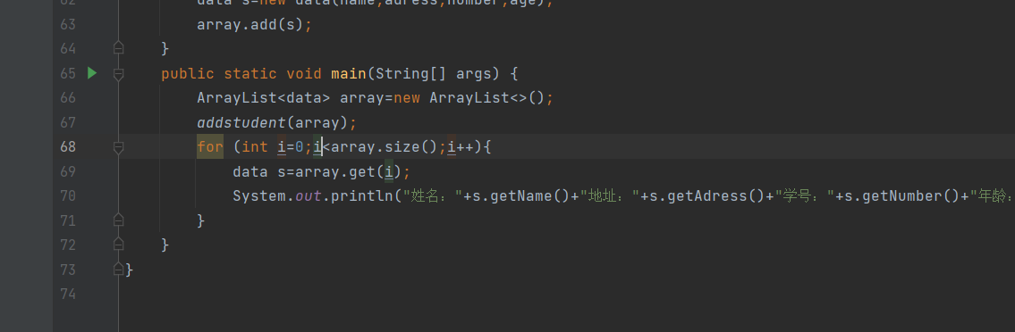 ArrayList储存对象 import java.util.ArrayList;import java.util.Scanner;class data{ private String name; private String adress; private int number; private int age; public data() { } public data(String name, String adress, int number, int age).