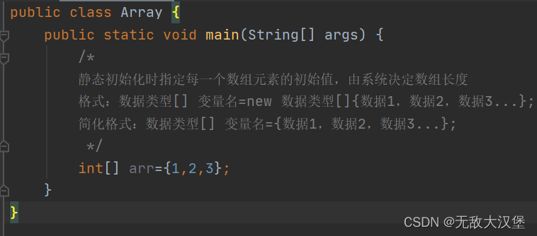 静态初始化:初始化指定每一个数组元素的初始值,由系统决定数组长度