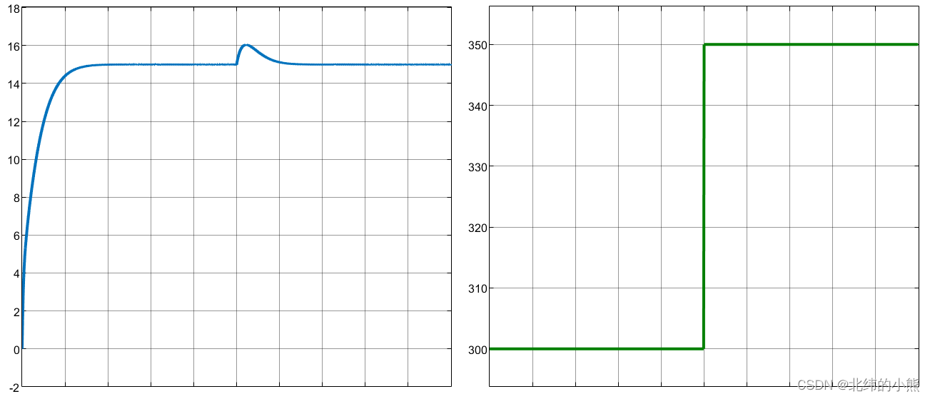 从图中可以看出,输入电压突变时,输出电压经过PI闭环控制快速调整控制信号,在极短时间内是的输出电压稳定在15V,表明PI控制在面临外界干扰时具有较强的抗干扰能力。