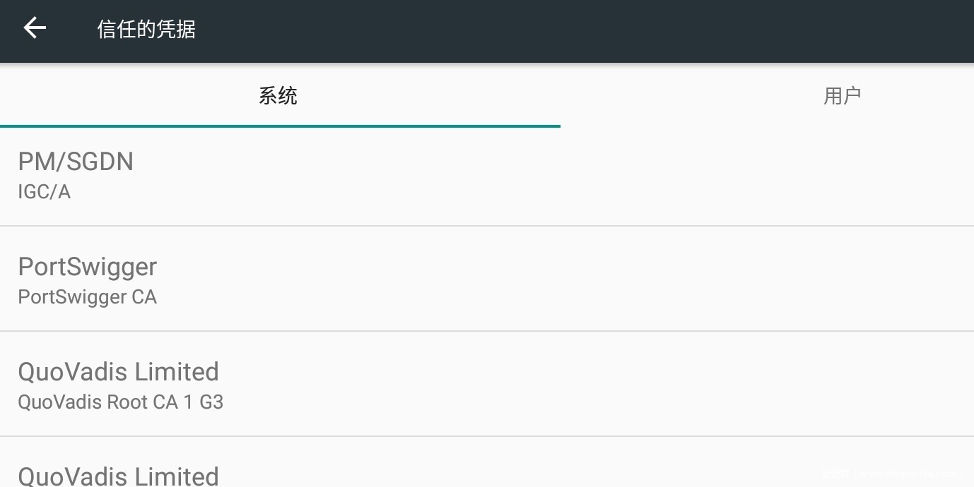 Android7. 0及以上的系统中,每个应用可以定义自己的可信CA集。默认情况下,应用只会信任系统预装的CA证书,而不会信任用户安装的CA证书。而某些APP只信任自己内置的证书,所以导致安装的证书针对这些APP无法生效。
