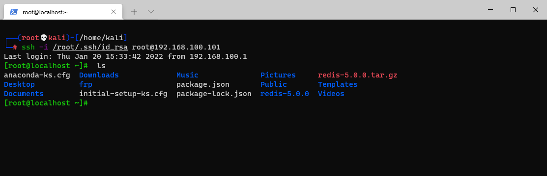 └─# ssh -i /root/.ssh/id_rsa root@192.168.100.101