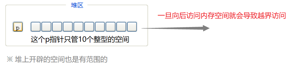 // 越界访问 - 指针p只管理10个整型的空间,根本无法访问40个