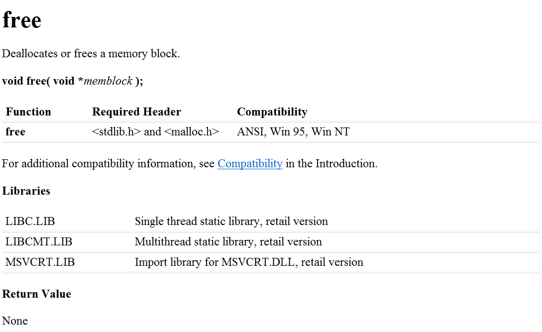 🔍 官方介绍:http://www.cplusplus.com/reference/cstdlib/malloc/?kw=free