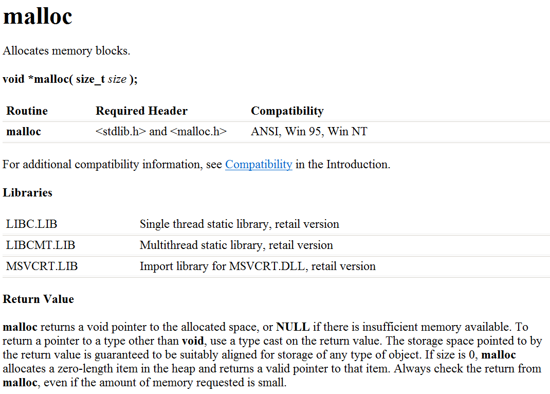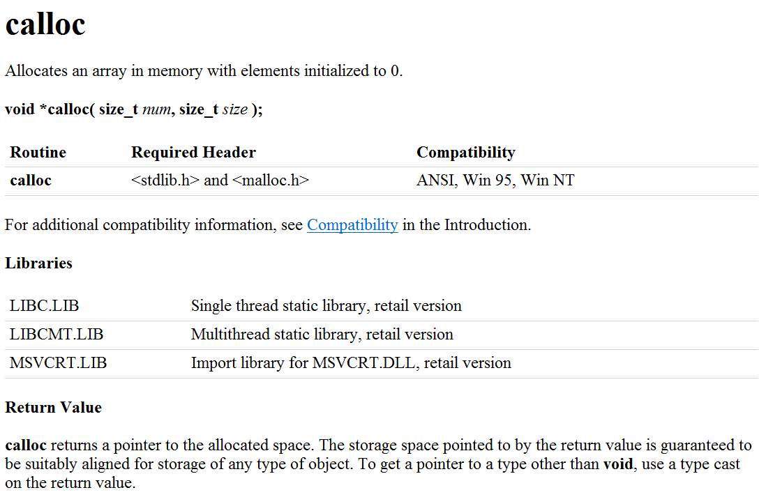 🔍 官方介绍:http://www.cplusplus.com/reference/cstdlib/malloc/?kw=calloc