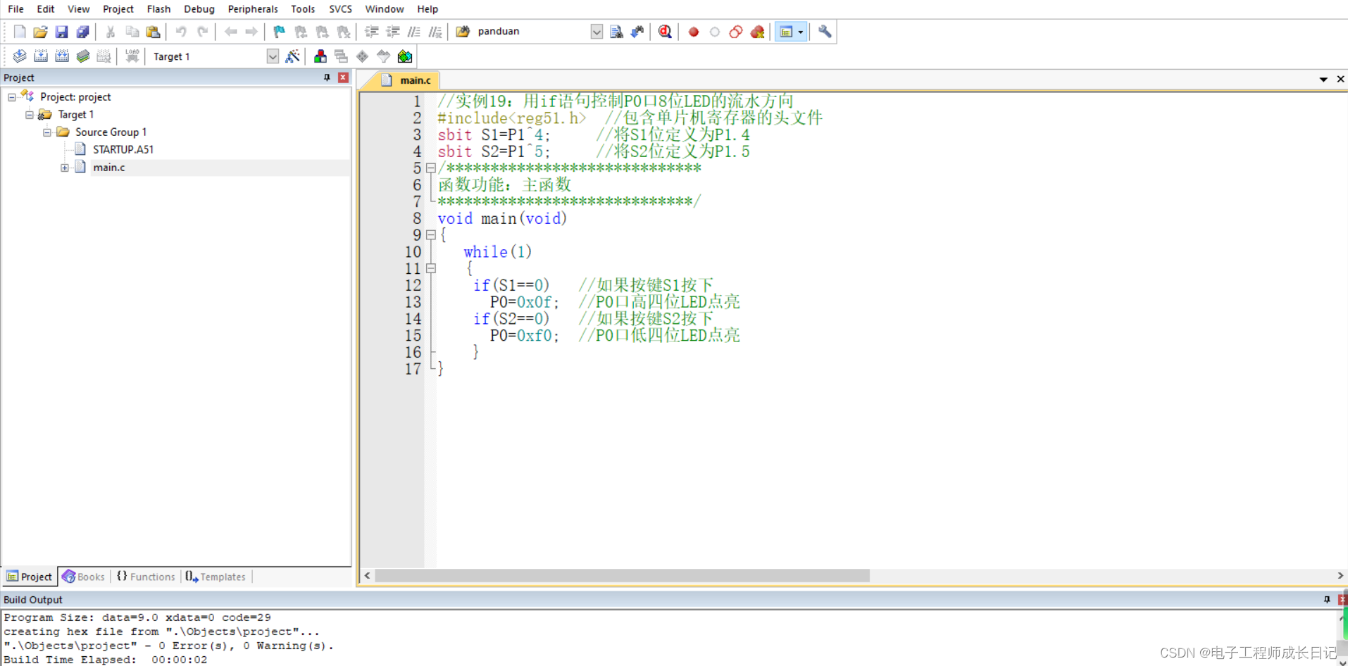 if(S2==0) //如果按键S2按下