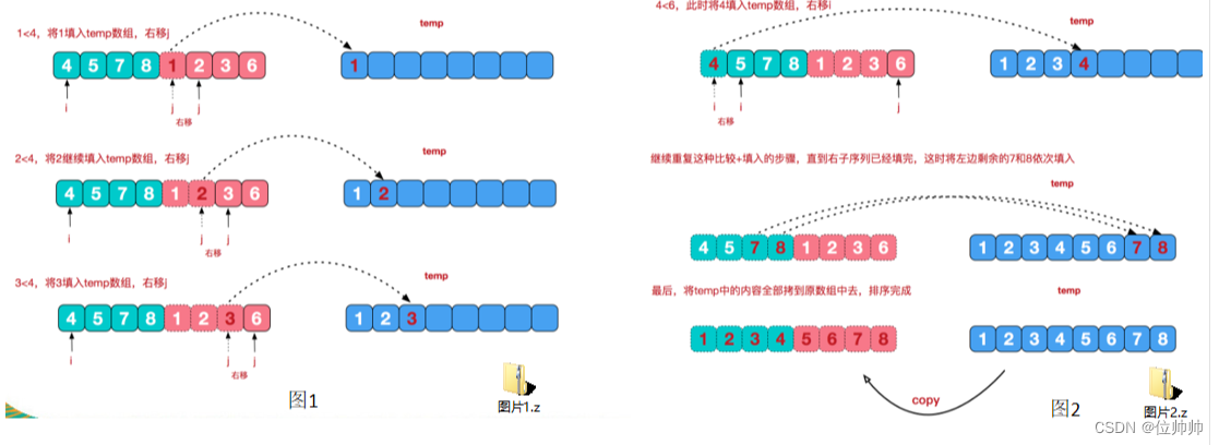 } else { //反之,将右边有序序列的当前元素,填充到temp数组