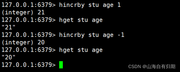 HINCRBY key field increment(正数是增加,负数是减少)