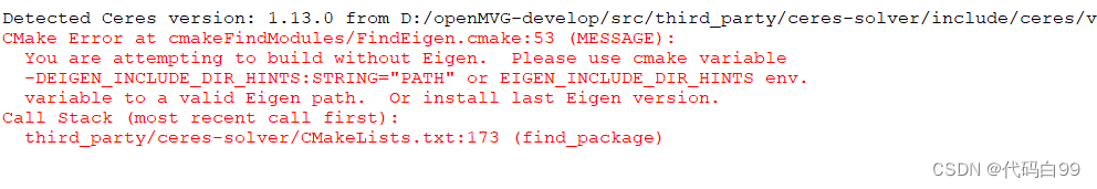 使用cmake配置openmvg无法找到eigen问题 使用cmake配置openmvg无法找到eigen问题。CMake Error at cmakeFindModules/FindEigen.cmake:53
