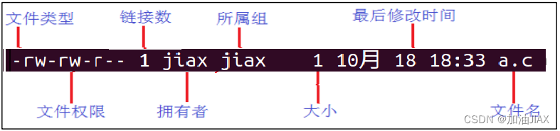 (1)第一列的第一个字符就是文件的类型。 - 就是普通文件, d 是目录文件等等。