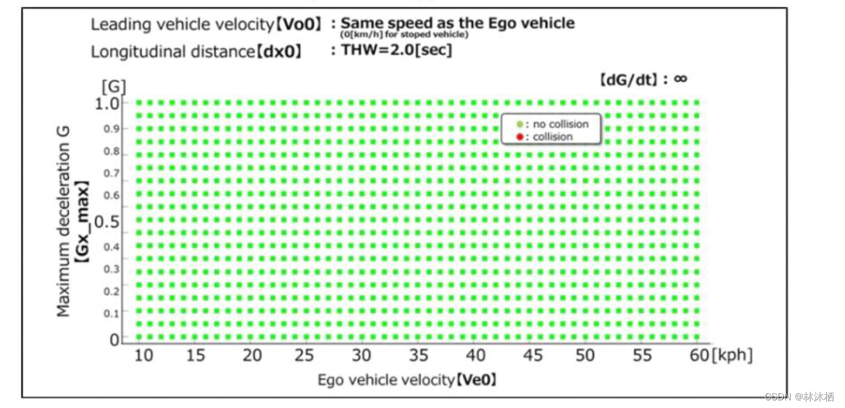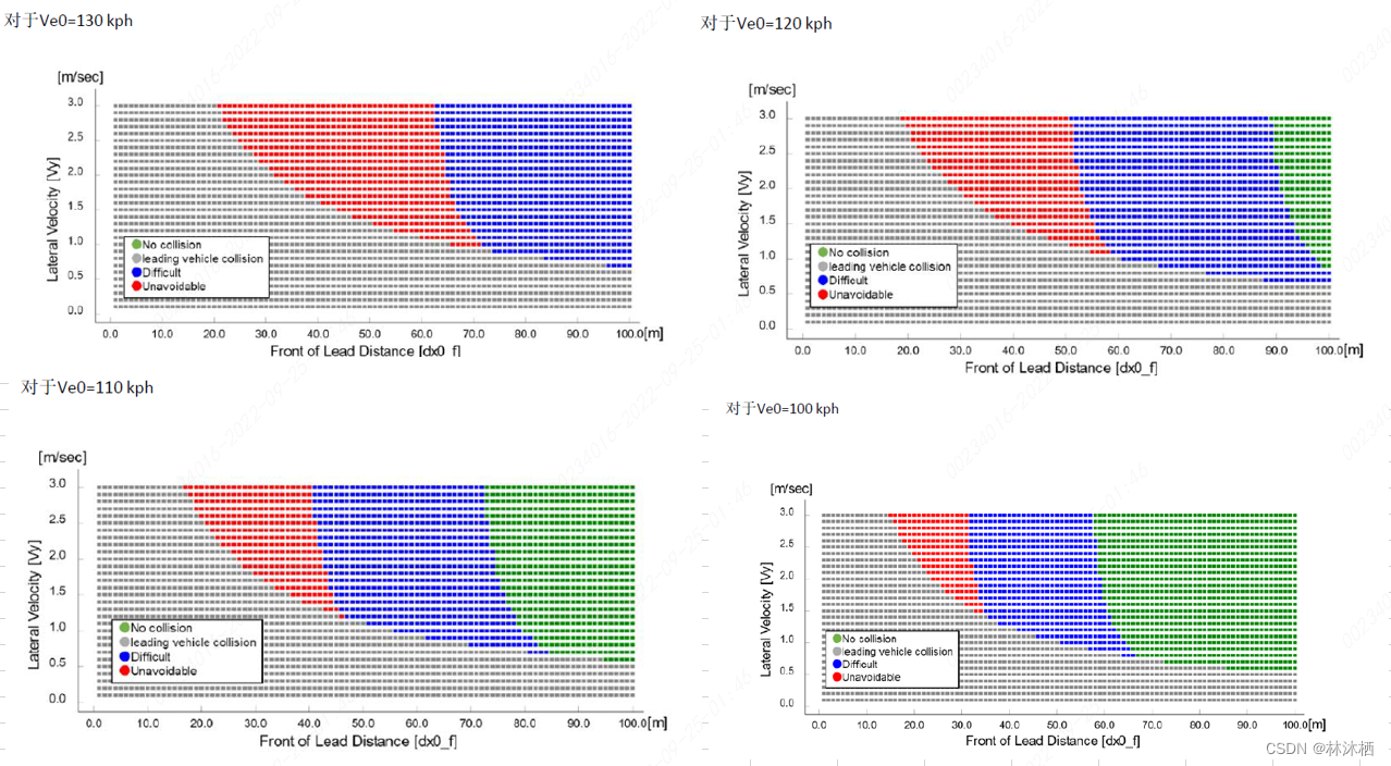 以下数据表是模拟的图示示例,其确定了ALKS应避免碰撞的条件。如果认为冲突是可避免的,则定义三个子集,以根据性能模型一,根据其难度区分参数集:
