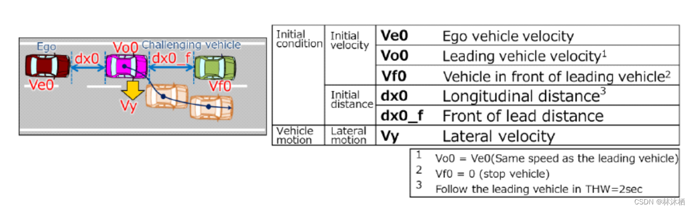 切入策略的临界性应根据TTC、切入车辆最后面点和ALKS车辆最前面点之间的纵向距离、切入车辆的横向速度和切入车辆的纵向运动确定。本试验应至少在以下条件下进行: