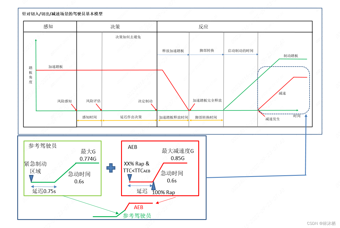 (f)领先车辆的减速度至少为6 m/s2时,表示完全产生的减速度,直至停止。