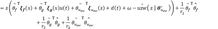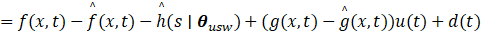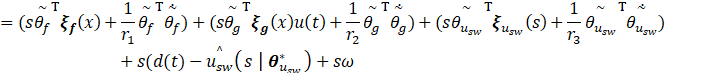 总结:使用s的隶属度函数构造模糊系统d^(s|θusw),输出为模糊向量ξusw,模糊输出向量用于构造逼近d所设计的自适应律θusw,且usw^ = θusw*ξusw。