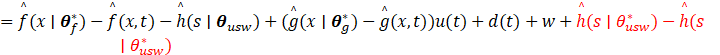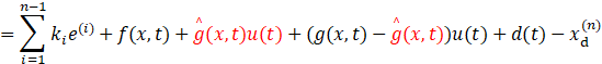 这里由于g是估计的,不能和以往一样直接代入控制输入u,需要进行转化(想办法利用上述的逼近误差表达式) ,先加减g^u
