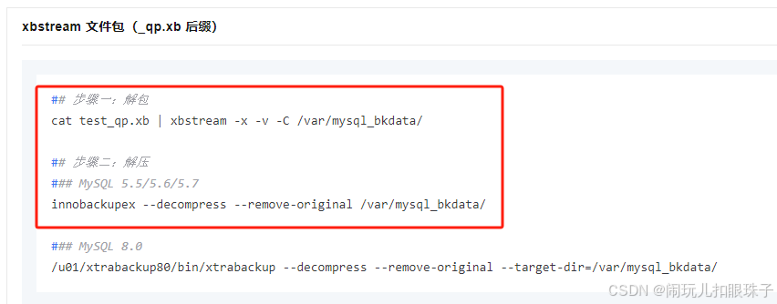 我们只需要将备份文件下载后解压即可,我的备份文件是qp.xb,按照阿里云文档使用如下命令解包解压即可(其实可以不用完全解开,解压也可以单独对目标库文件夹解压)