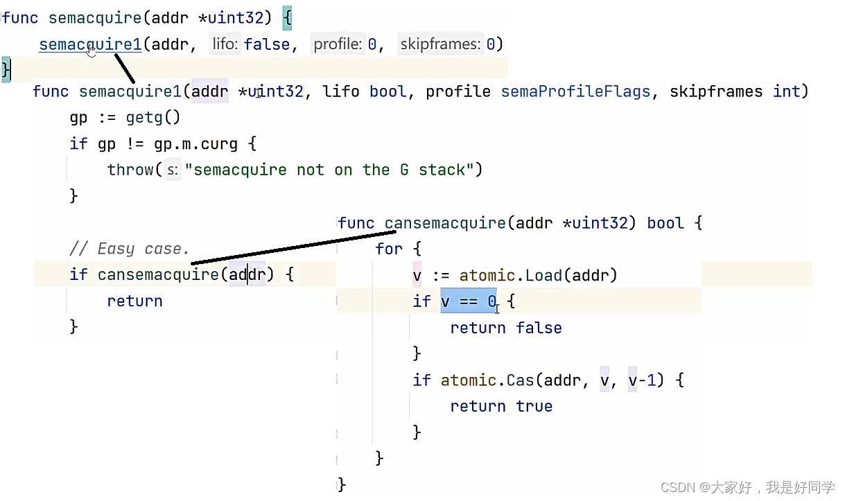 【线程同步1】使用信号量实现线程同步 文章目录信号量信号量函数总结命名信号量相关函数匿名信号量相关函数使用信号量实现进程同步在之前的博文中有讨论过如何使用信号量实现进程同步(【进程同步】使用信号量实现进程同步(附C++实现代码)),该文中详解了同步的概念以及信号量相关函数的具体使用和实验举例,今天我们来学习如何使用信号量实现线程同步。信号量信号量是一个与队列有关的整形变量,可以将它想象为一个数后面拖着一条排队的队列。如图所示:其中信号量值代表:该值大于0,当前有n个可用资源;该值等于0,当前可用资源为0;该值小于0,此时有