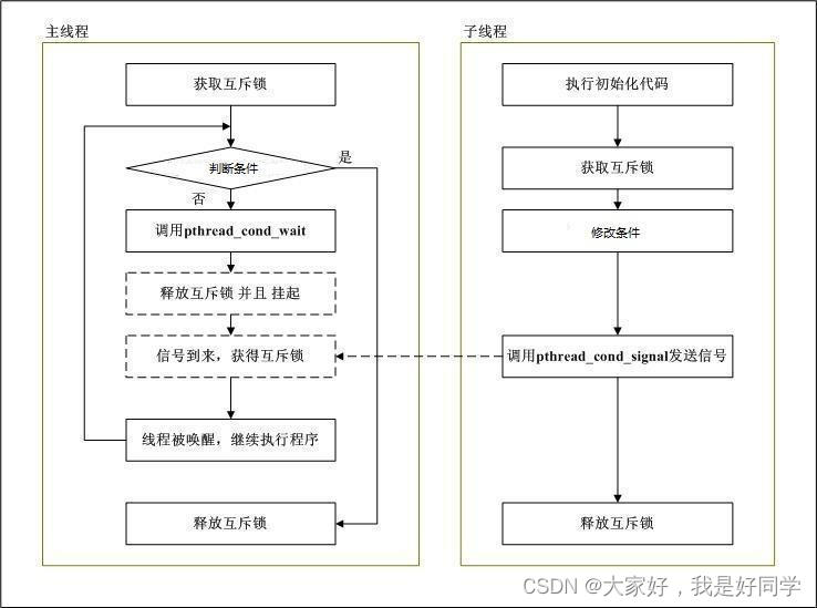 【线程同步2】使用互斥锁实现线程同步 文章目录互斥锁基本概念互斥锁相关函数互斥锁的使用静态互斥锁的使用动态互斥锁的使用C++11标准库中的mutex生产者-消费者实现互斥锁基本概念互斥锁是一种使用频繁的同步手段,也被称为互斥量。对比信号量的使用,我们可以将互斥锁的使用理解为信号量初值仅为1的一种情况。互斥锁是属于系统的内核级对象,它能够使线程拥有某个资源的绝对访问权,互斥锁主要包括使用数量、线程ID,递归计数器等,其中线程ID表示当前拥有互斥锁的线程,递归计数器表示线程拥有互斥锁的次数。当互斥锁的线程ID为0时,表示互斥锁不被任何线
