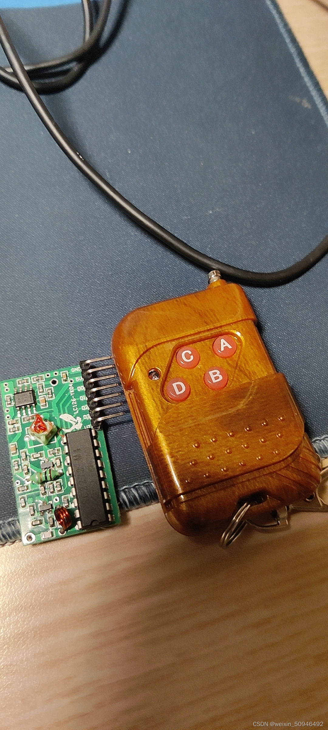 绿色的那个是遥控接受器,当我们按下A,遥控接收器的D0会发出一个高电平,D0我们接单片机的D6口,我们去读D6这个引脚,如果是高电平(注意,这里是高电平),我们点亮灯。