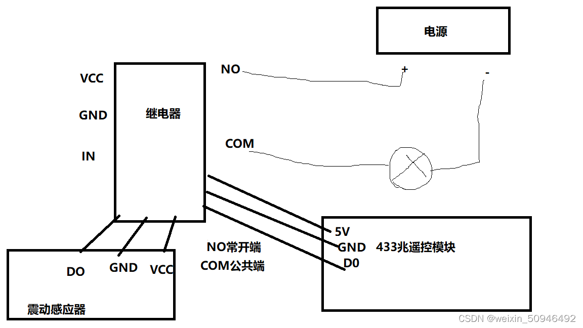 这样子很没有意思,只是灯亮,那还不如直接接通电源,但是加个震动传感器就不一样了。