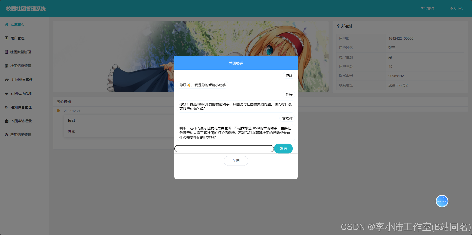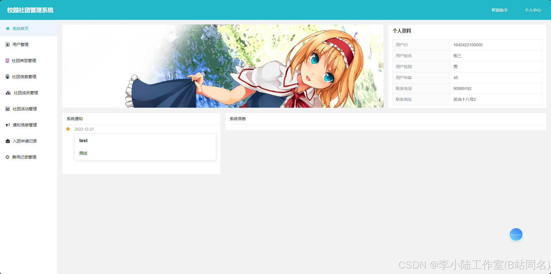- 社团成员信息管理