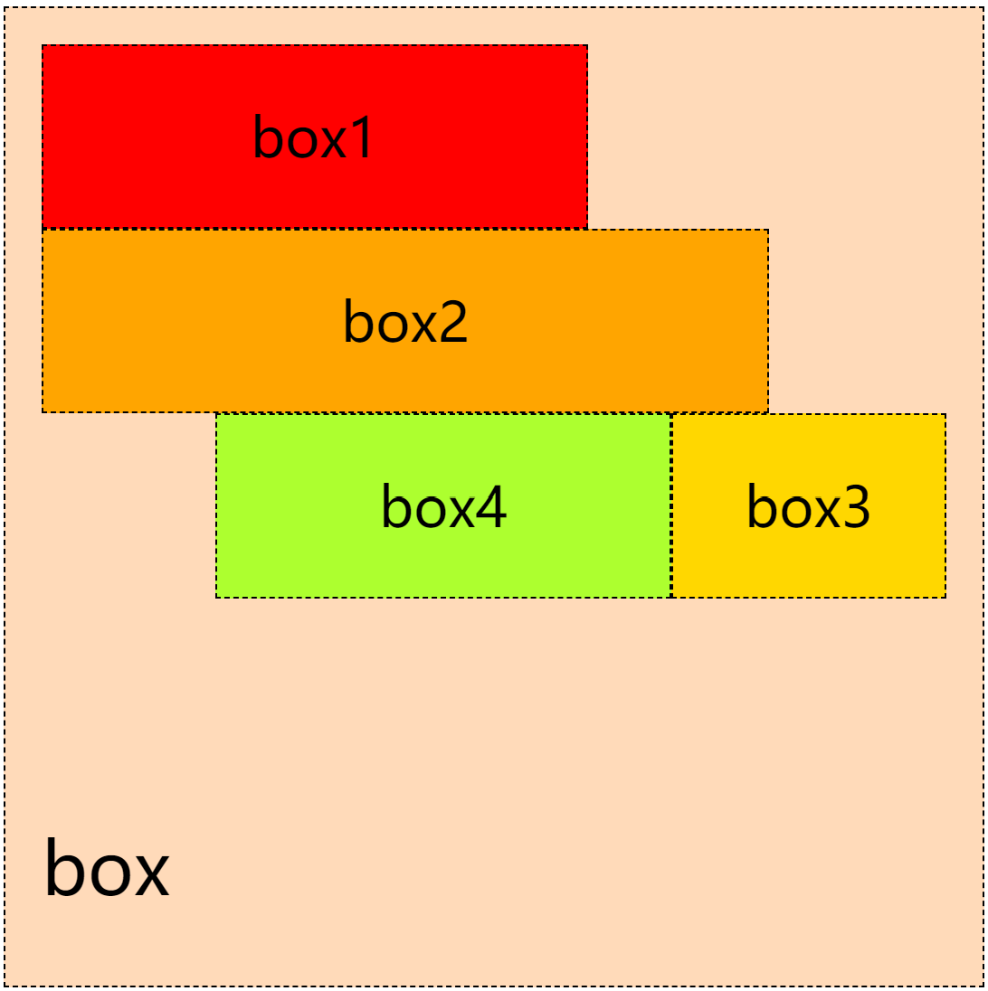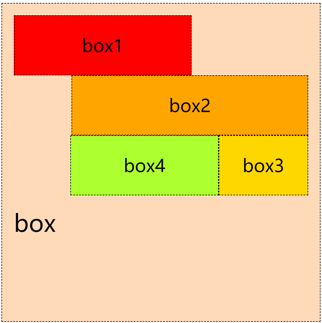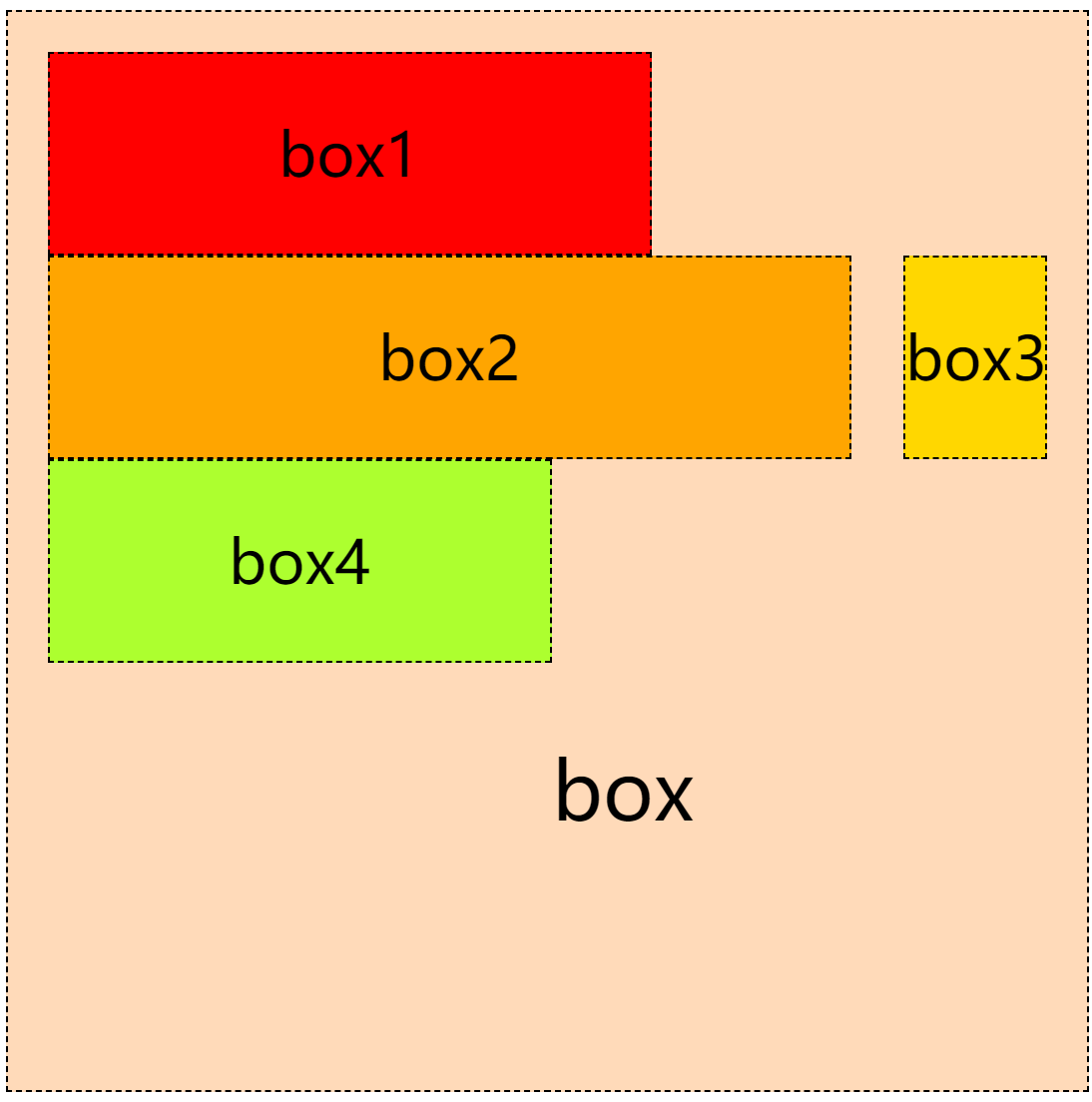 在文档源码中box3在box4前面,所以当box3、box4均向左浮动时,位于后面的浮动元素box4的左外边界在在box3右边界的左侧