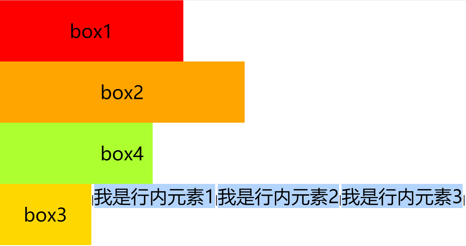 我们让box1、box2、box4向左浮动并将box3缩小后向右浮动