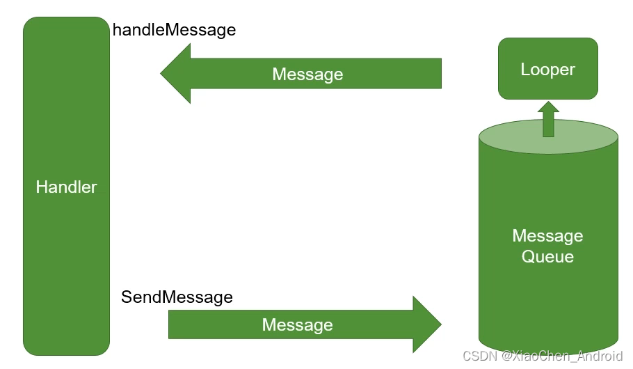 - handler通过SendMessage()方法发送一个消息到消息队列里面(注意不是直接发送给主线程);