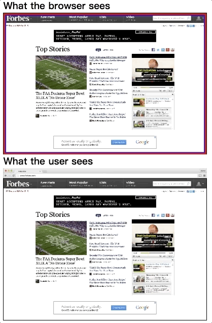 如果不好理解,可以参照下图动画来感受一下。(上面蓝框表示底层画布、红框表示视口,下面表示用户在浏览器窗口中看到的页面)