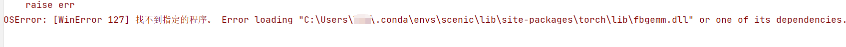 Error loading “C:\Users\xxx\...\fbgemm.dll“ or one of its dependencies. OSError: [WinError 127] 找不到指定的程序。 Error loading "C:\Users\xxx\.conda\envs\scenic\lib\site-packages\torch\lib\fbgemm.dll" or one of its dependencies.