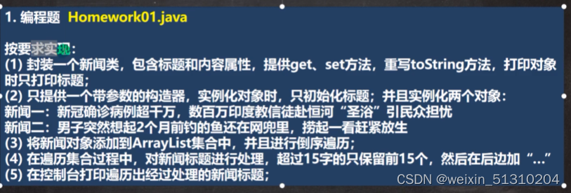 该文章展示了一个Java编程示例,创建了NewsPaper类用于表示新闻,然后使用ArrayList存储多个新闻对象并进行倒序遍历。此外,还定义了一个方法processTitle来处理标题,确保不超过15个字符并添加省略号。
