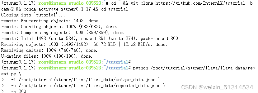 2.1环境安装:假如我们想要用 XTuner 这款简单易上手的微调工具包来对模型进行微调的话,那我们最最最先开始的第一步必然就是安装XTuner!安装基础的工具是一切的前提,只有安装了 XTuner 在我们本地后我们才能够去思考说具体怎么操作。安装一个 XTuner 的源码到本地来方便后续的使用。