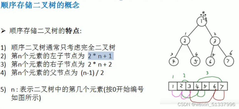 顺序存储就是在内存中是连续的一片空间,将二叉树以数组的形式实现: